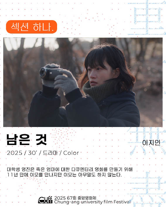 한국 영화계를 대표하는 수많은 영화인들을 배출한 중앙대학교 영화전공의 학생들의 졸업작품이 상영되는 제66회 중앙영화제 <중중무진(重重無盡)> (2025 CUFF)이 개최된다.